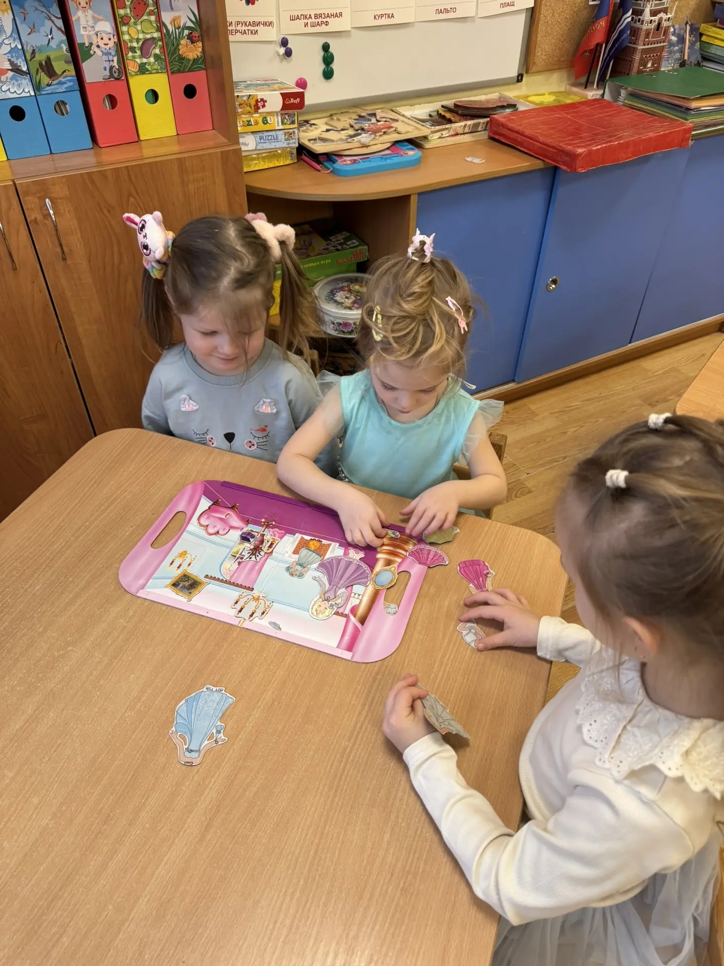 Дети рассматривали одежду для кукол и детскую одежду, называли, кто во что одет, запоминали алгоритм правильного одевания.