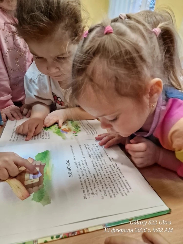Воспитатель познакомила детей с детским писателем и его творчеством, читали отрывки из сказок "Сказка о рыбалке и рыбке", "У Лукоморья дуб зелёный..."