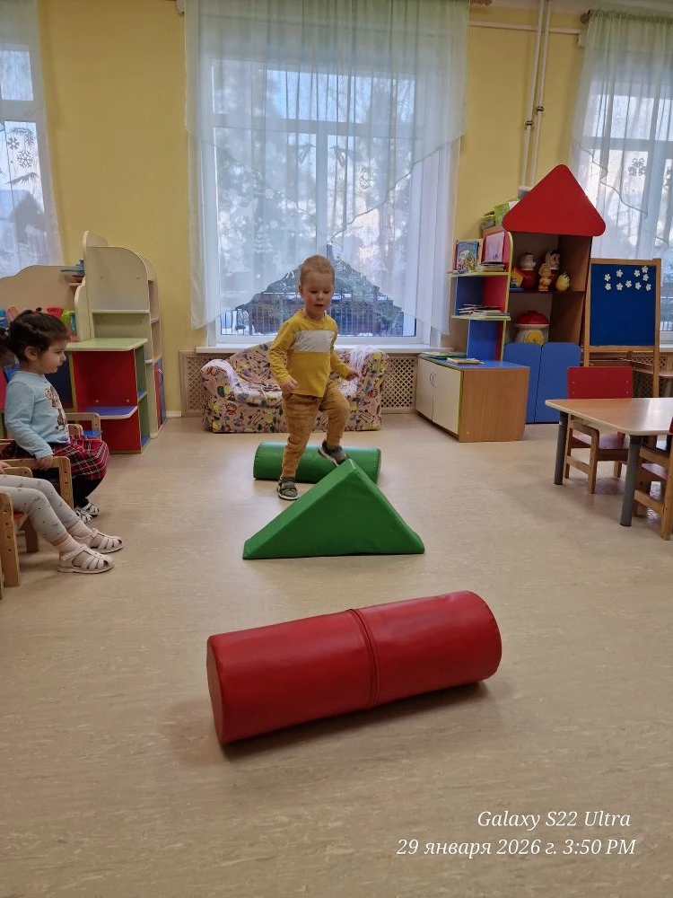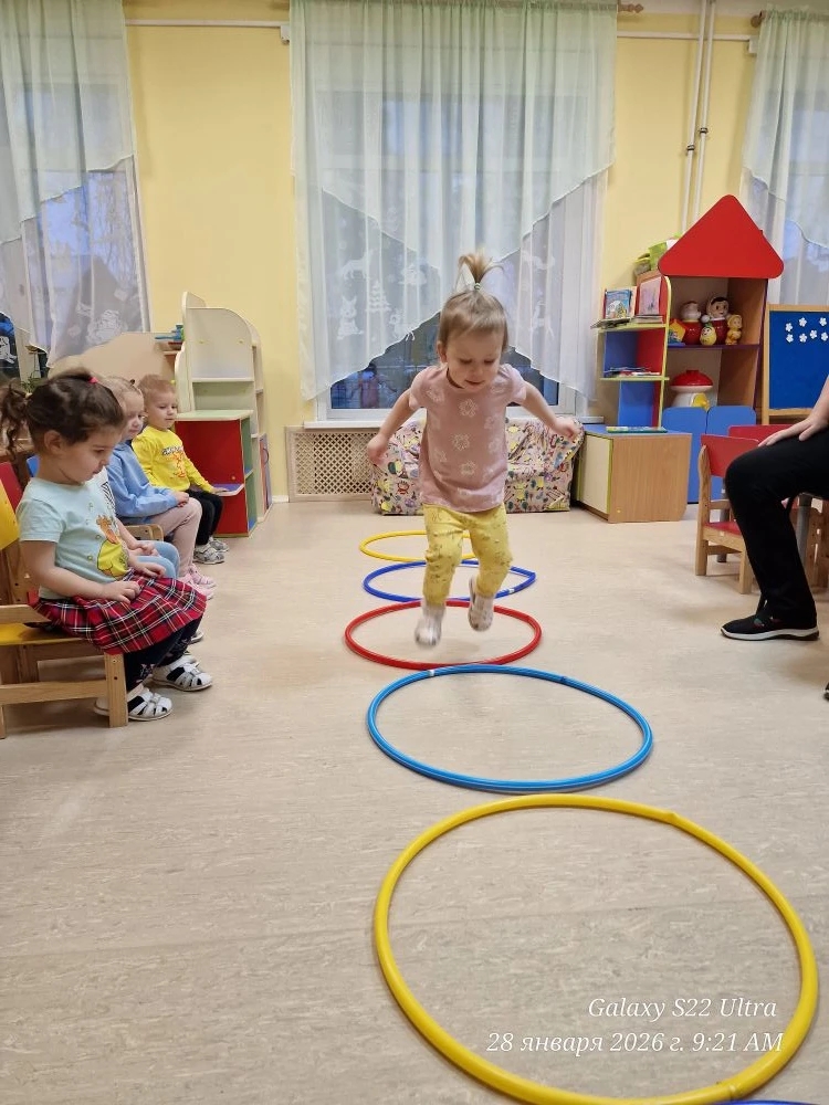 Весело и интересно проходит физкультура в группе у наших малышей. Дети группы раннего возраста с удовольствием проползают через туннель , прыгают через обруч, катают друг другу мяч. Это замечательные упражнения для развития физических способностей малышей! Такие задания помогают укрепить мышцы, развить координацию движений и чувство равновесия.
