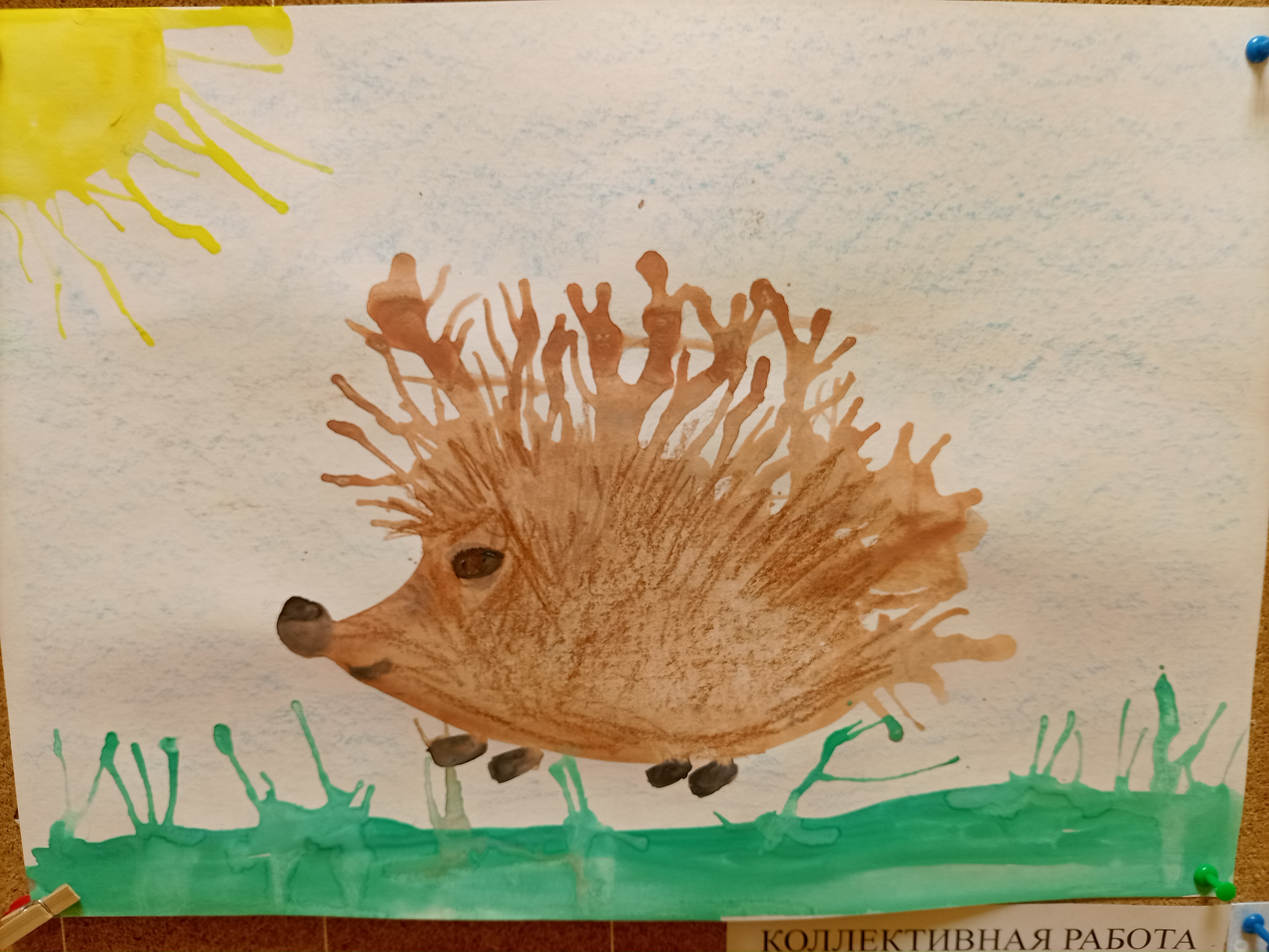 В средней группе «Почемучки» воспитатели организовали для ребят эксперимент – «кляксографию», рисование с помощью клякс. Вот такой замечательный «Ежик» получился в итоге эксперимента.