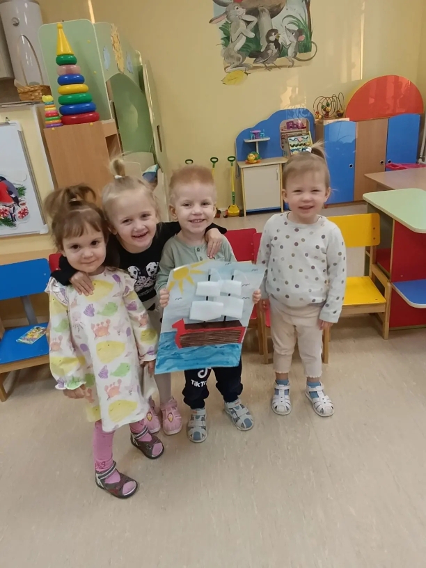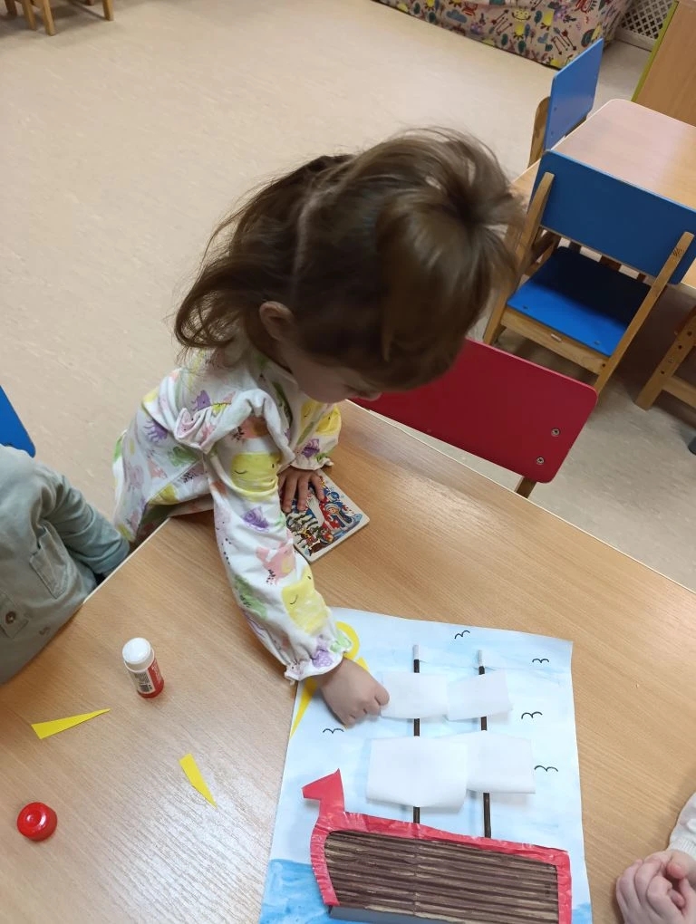 Эти сказки радуют ребенка, дают возможность порассуждать над тем, что такое -хорошо, и что такое- плохо. А в конце малыши сделали коллективную работу (,,Кораблик" ) по сказке А. С. Пушкина ,,Сказка о царе Салтане" (отрывок)