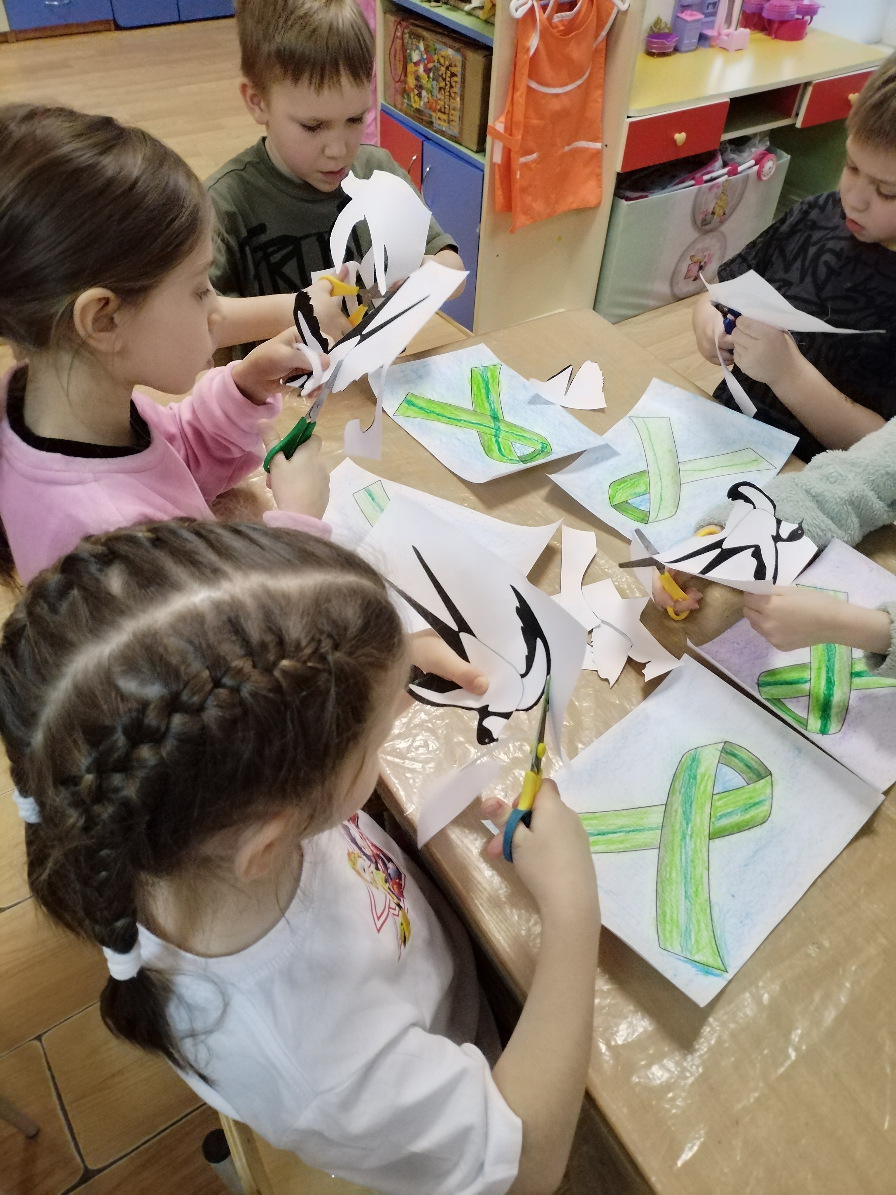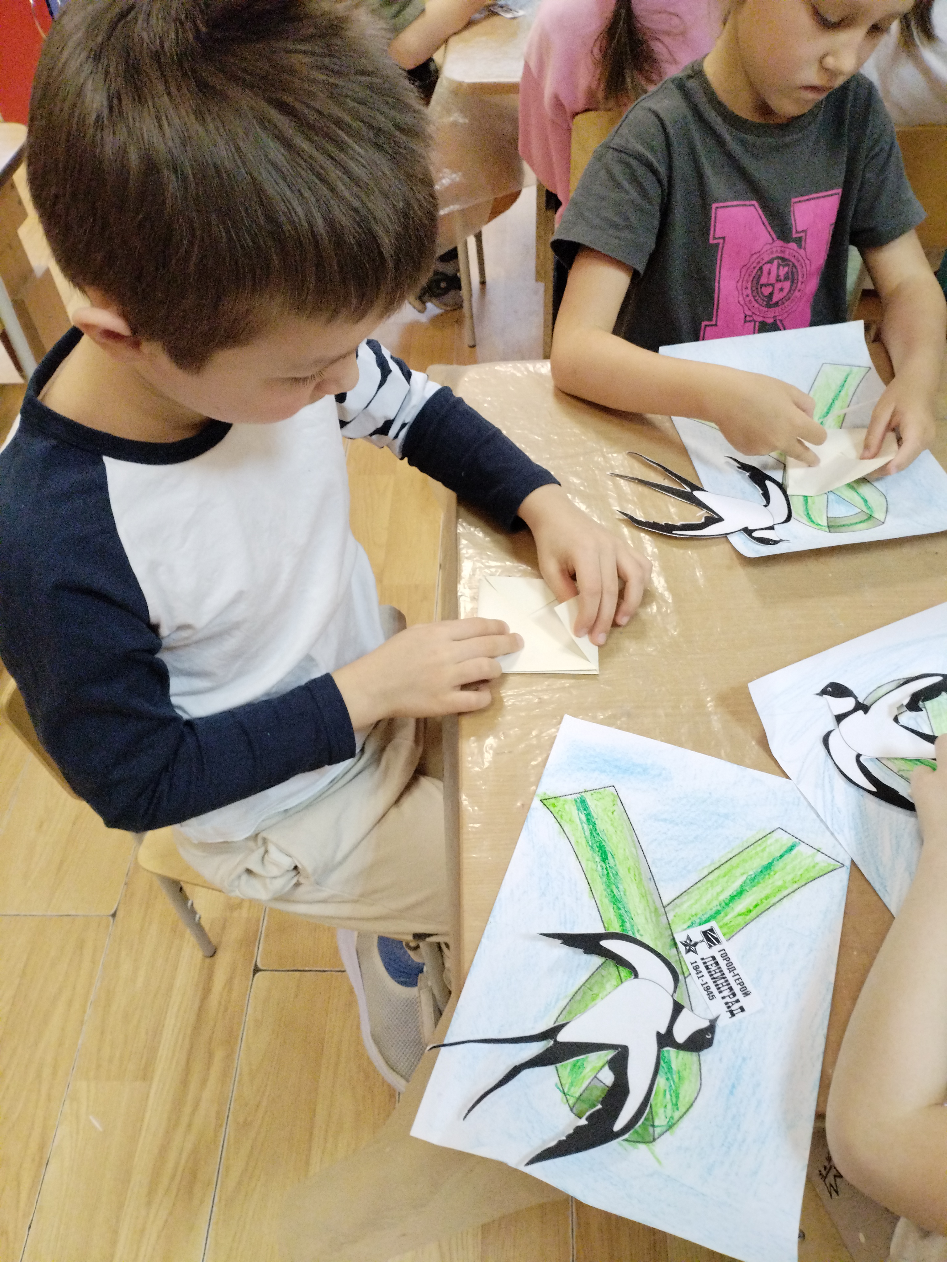 Главным событием акции стало создание коллективной аппликации с элементами рисования в нетрадиционной форме «Блокадная ласточка». Дети с большим интересом участвовали в работе.