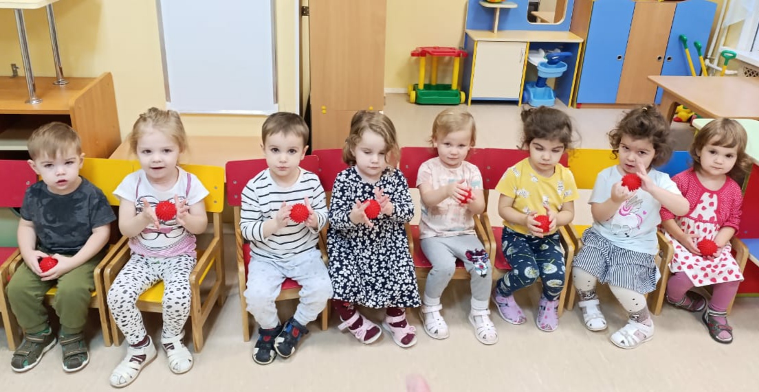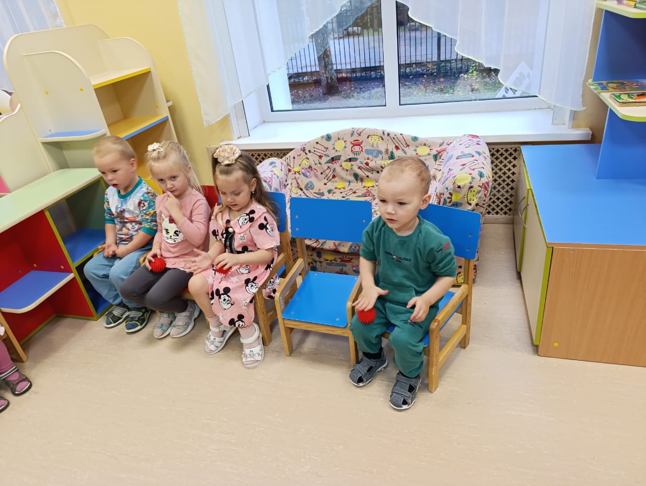Малыши группы раннего возраста погрузились в увлекательный мир нейрогимнастики с нашими любимыми колючими мячиками!