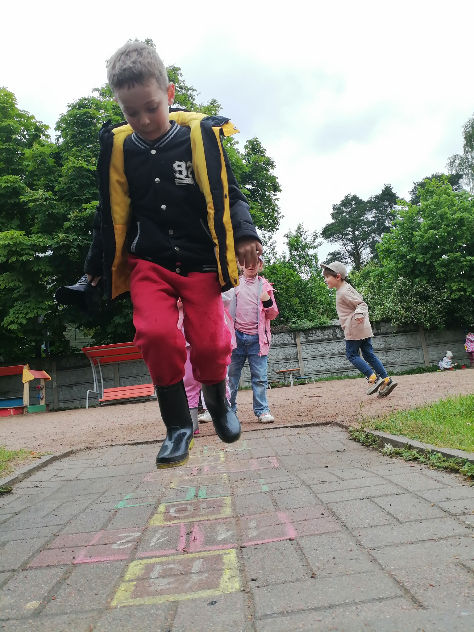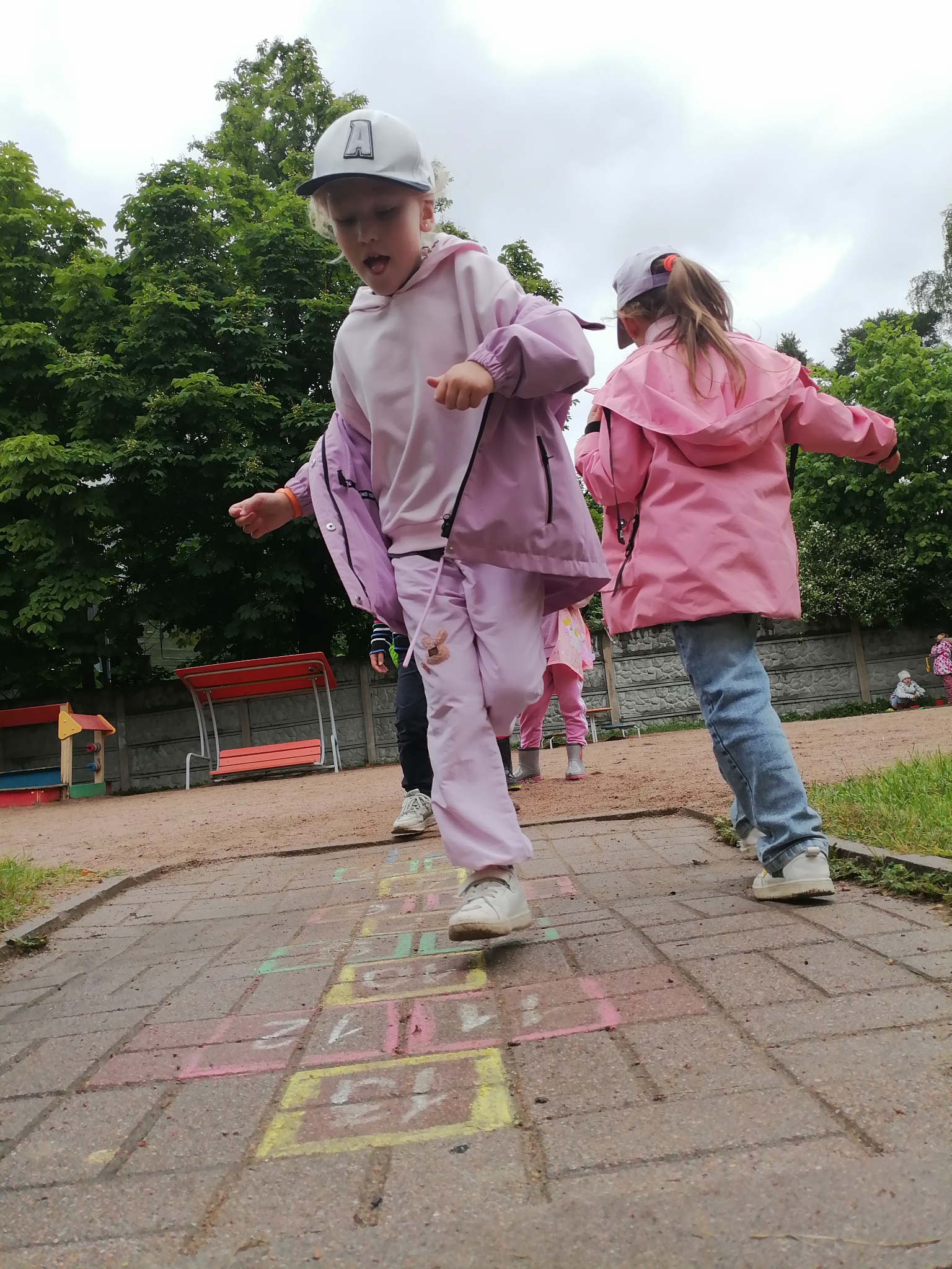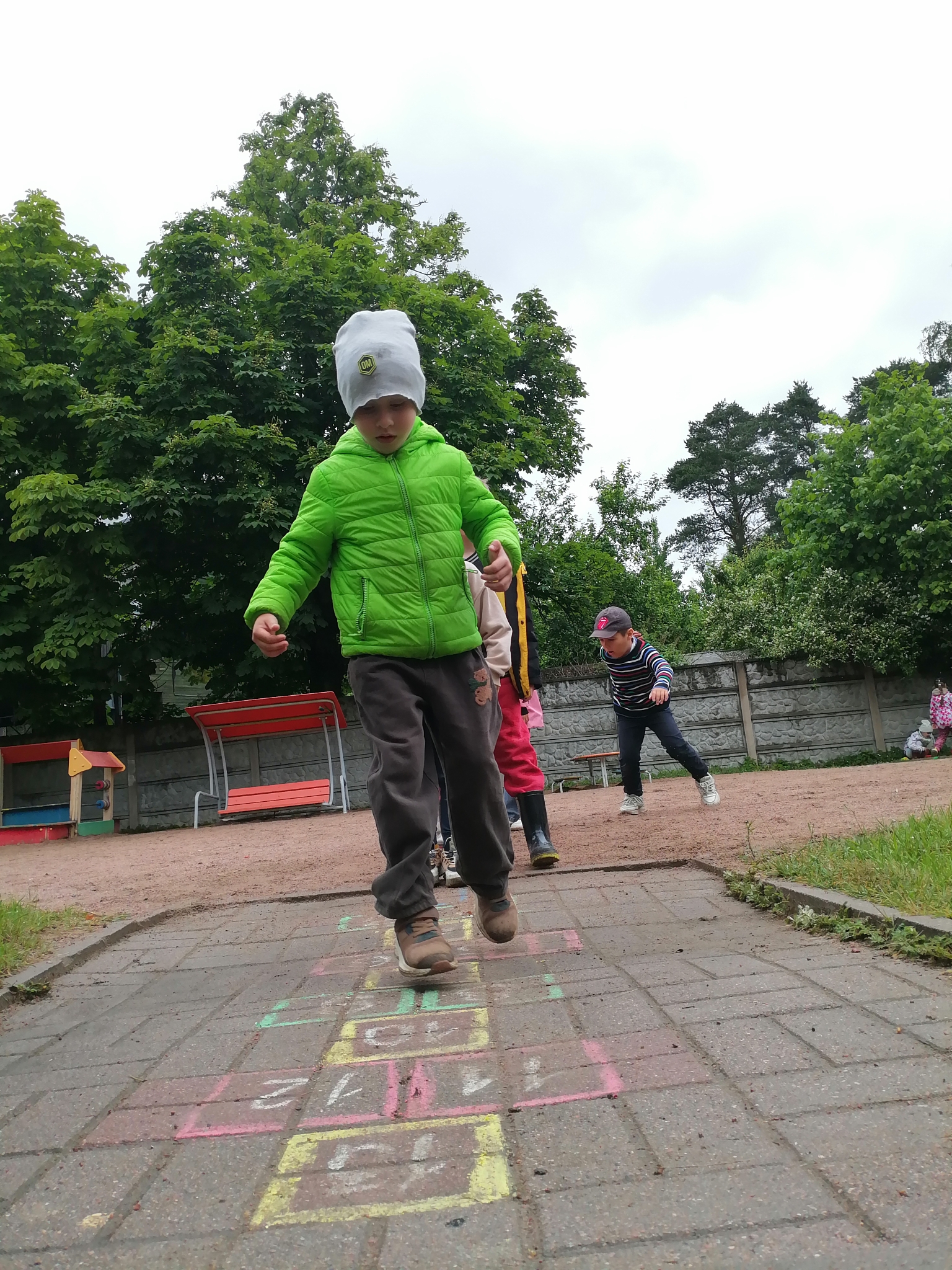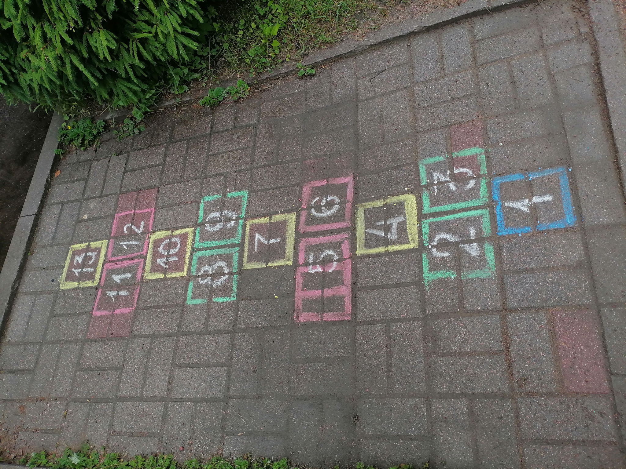 Самый распространенный вариант "классик", это когда один квадрат чередуется с двумя, и ребенок должен пропрыгать всю дорожку не сбившись.