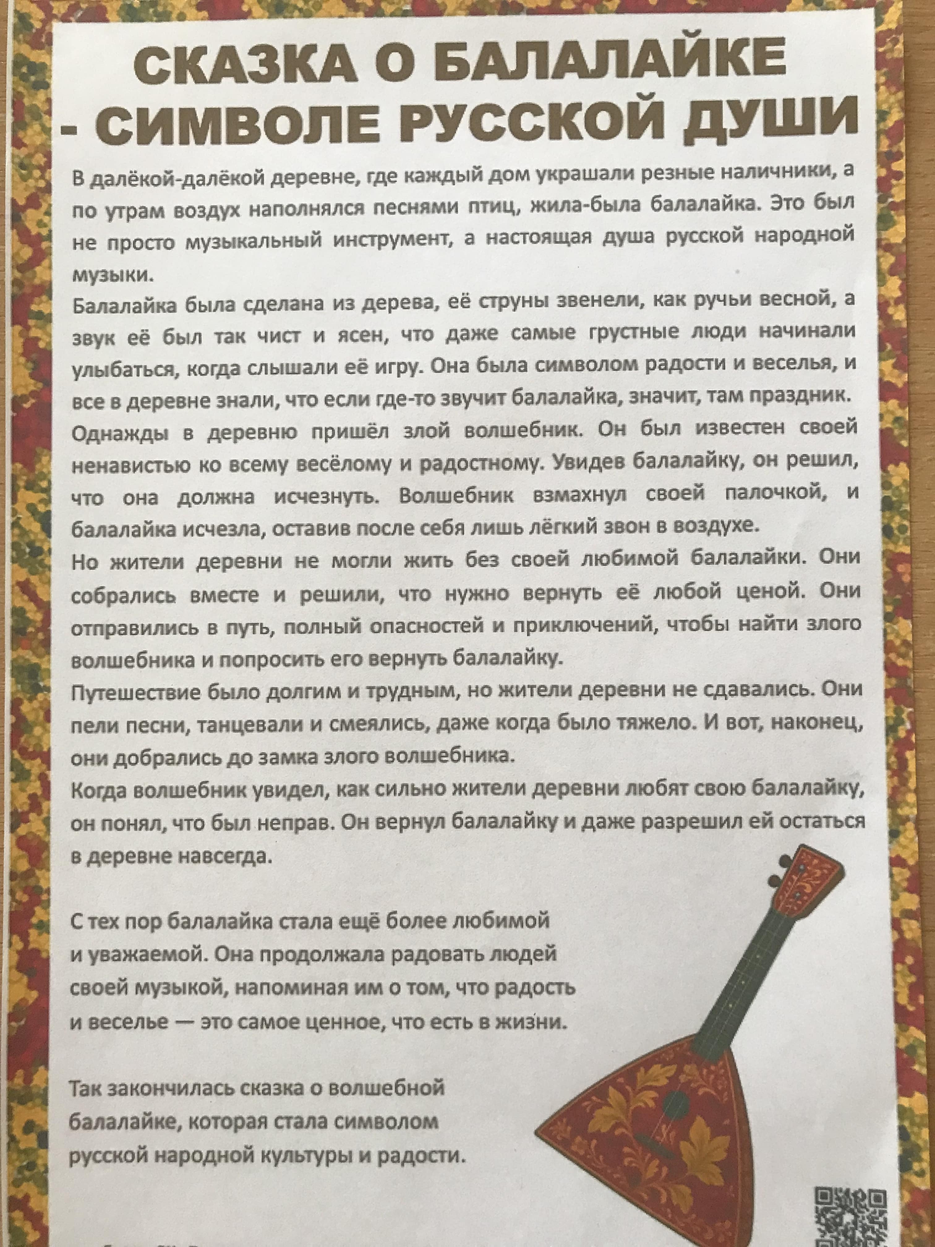 А знаете ли вы, что 23 июня во всем мире отмечают праздник, посвященный этому инструменту - День балалайки? «Трехструнная» - наиболее узнаваемый русский музыкальный инструмент. За многовековую историю балалайка стала эмблемой нашего государства. И не случайно! В ее звучании будто слышится сама русская душа - то разудалая и неуёмная, то печальная и задумчивая… В старые времена популярность балалайки в народной среде была настолько велика, что многие известные русские писатели и поэты отмечали это в своих произведениях.
