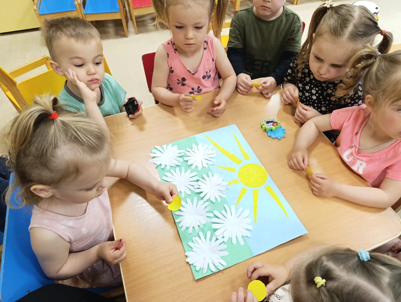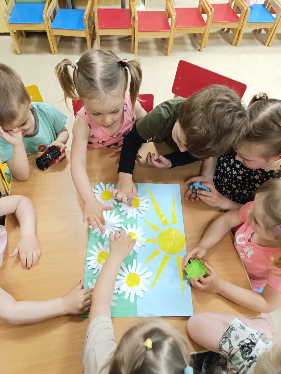 А в конце мероприятия малыши сделали коллективную работу " Ромашковое поле".