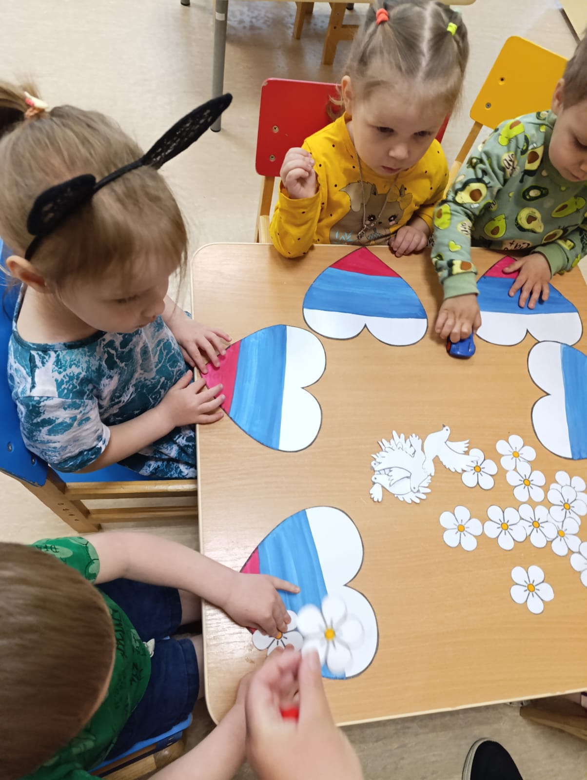 А в конце мероприятия ребята изготовили флаг России в технике аппликации.