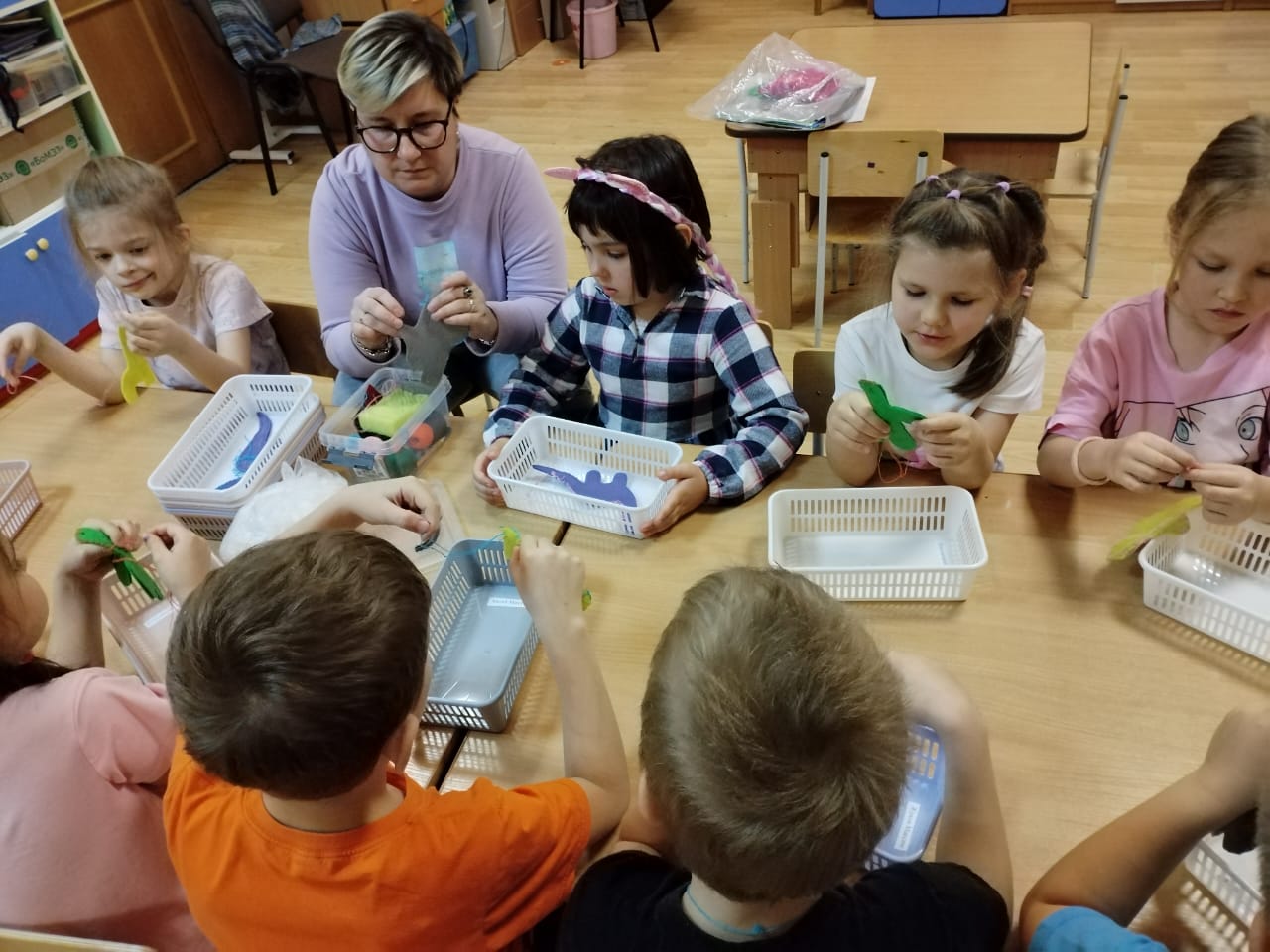 В ходе занятия дети узнали о различных видах песка – от мелкого и сыпучего до влажного и плотного. Они экспериментировали с его текстурой, прятали фигурки и находили их в песке. Педагог Молодецкая Мария Владимировна умело направляла их, помогая развивать мелкую моторику, координацию движений и воображение.