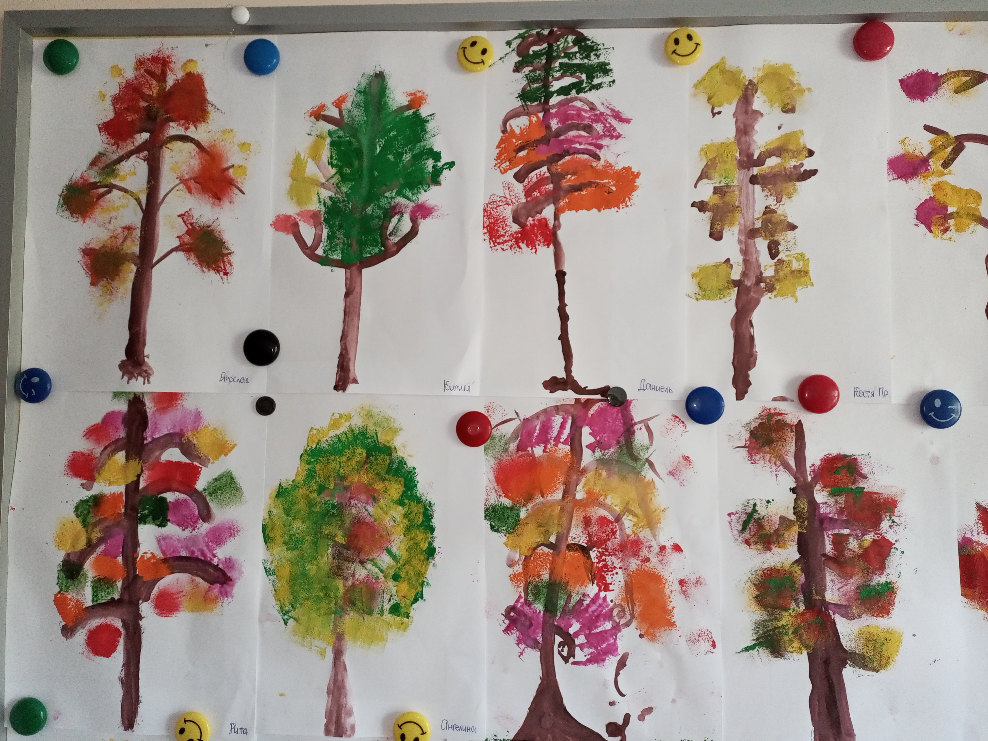 Посмотрите, какой красивой и разноцветной получилась осень в рисунках маленьких непосед!