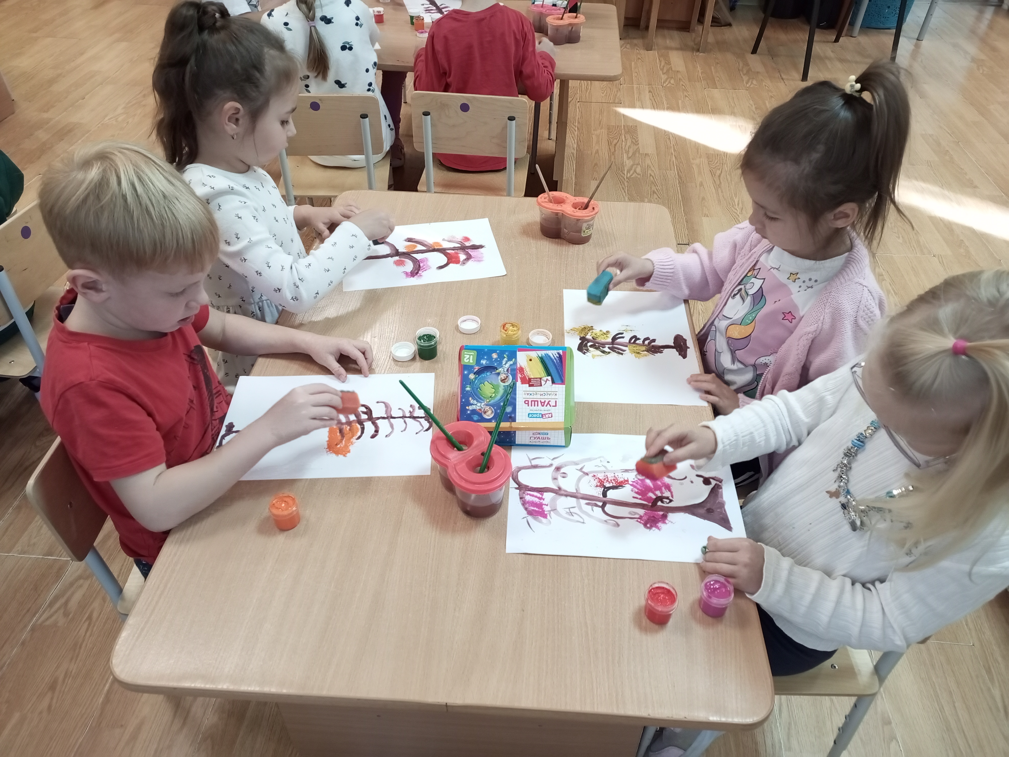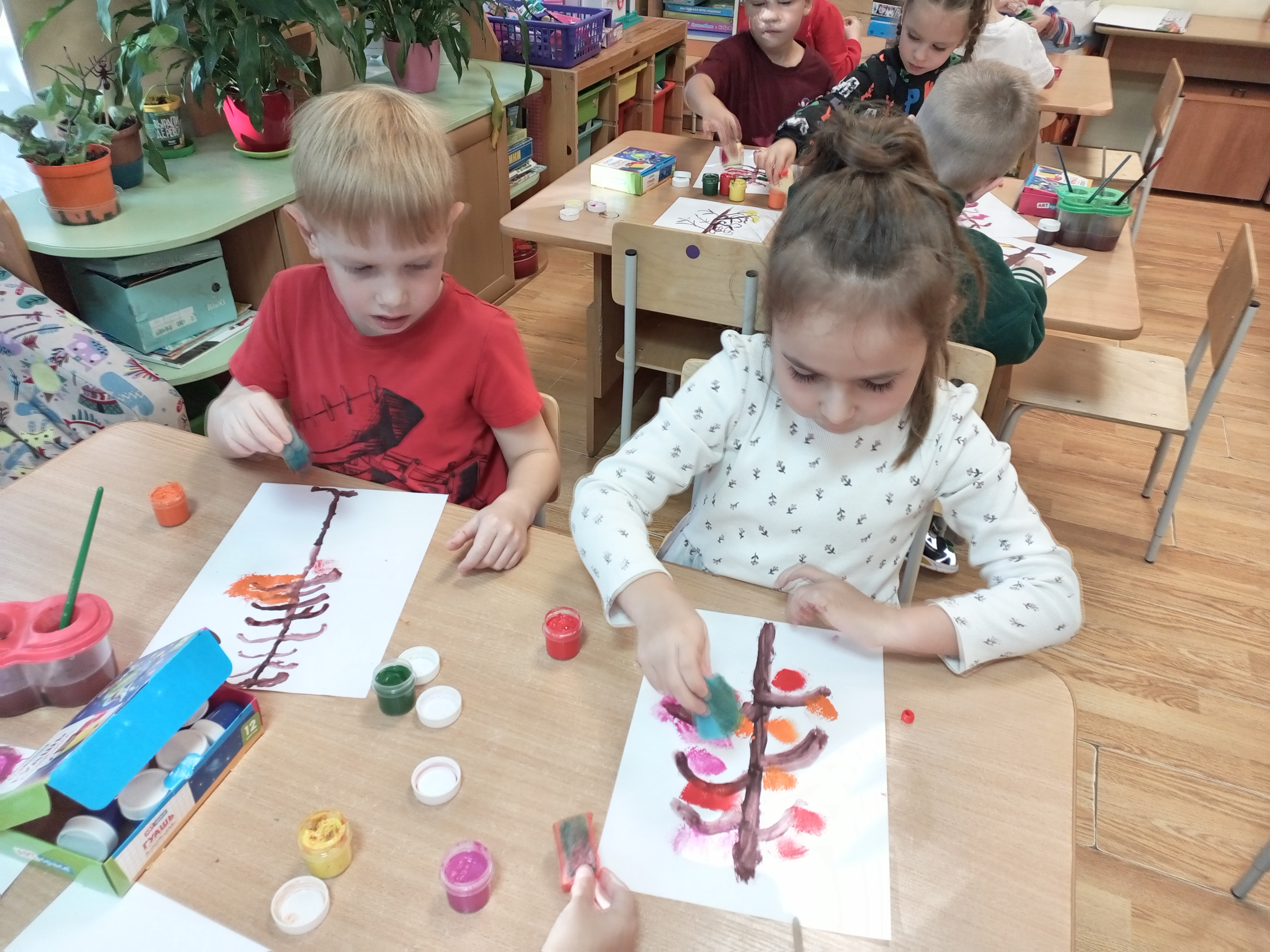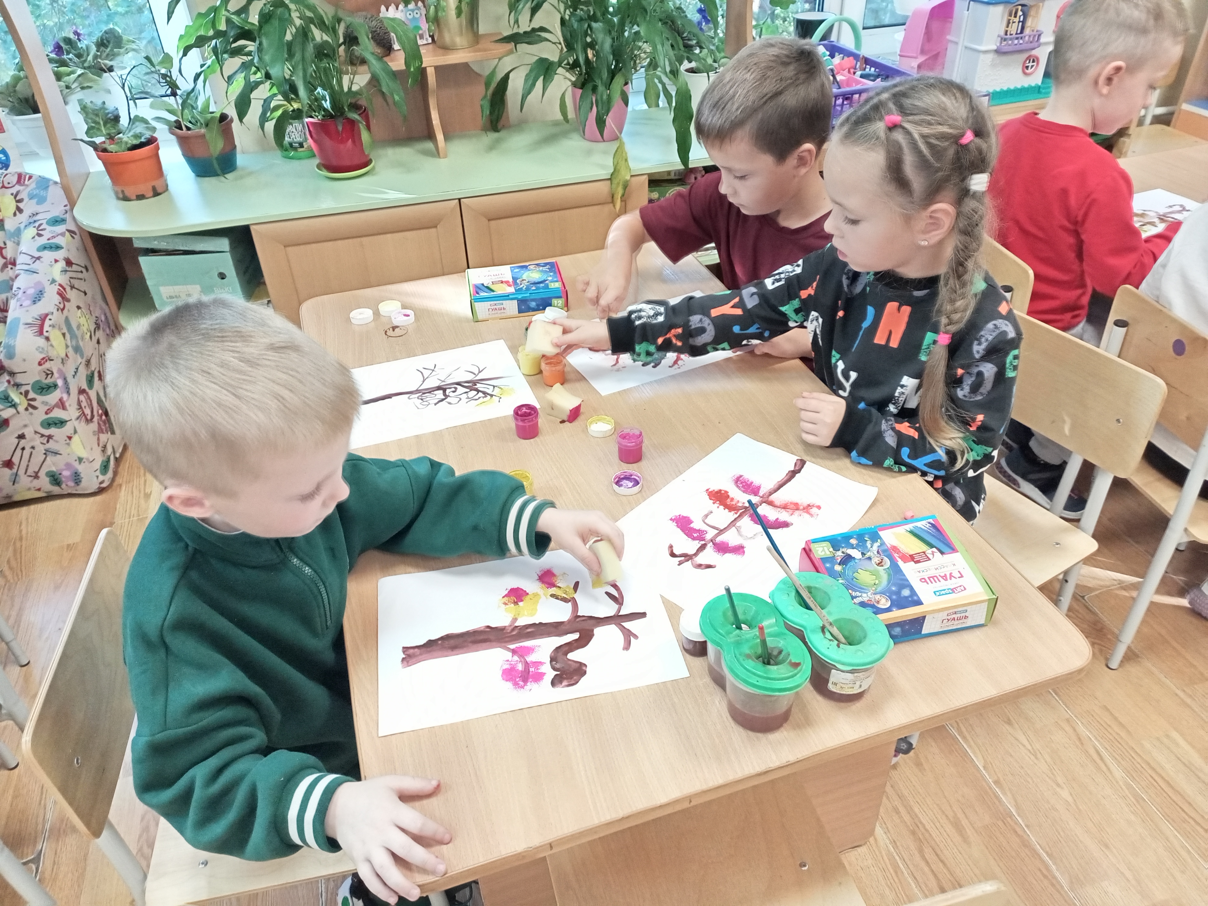 Вот и наступила золотая осень, расплескавшая по деревьям яркие краски. С удовольствием воспитанники старшей группы "Непоседы" наблюдают на прогулке за изменениями, происходящими в природе осенью. И, конечно, всем ребятам хочется отобразить свои впечатления в рисунках. Как же передать красками волшебство осени? На помощь малышам приходят нетрадиционные техники рисования.