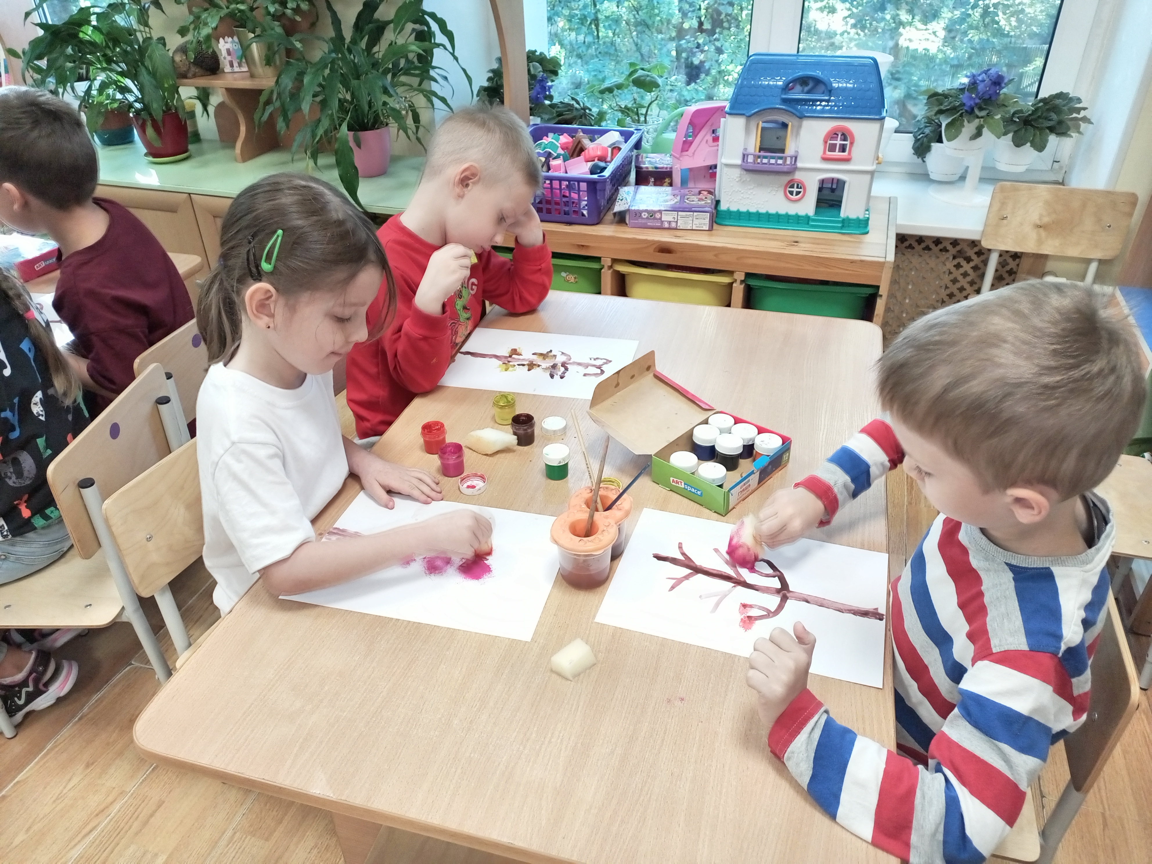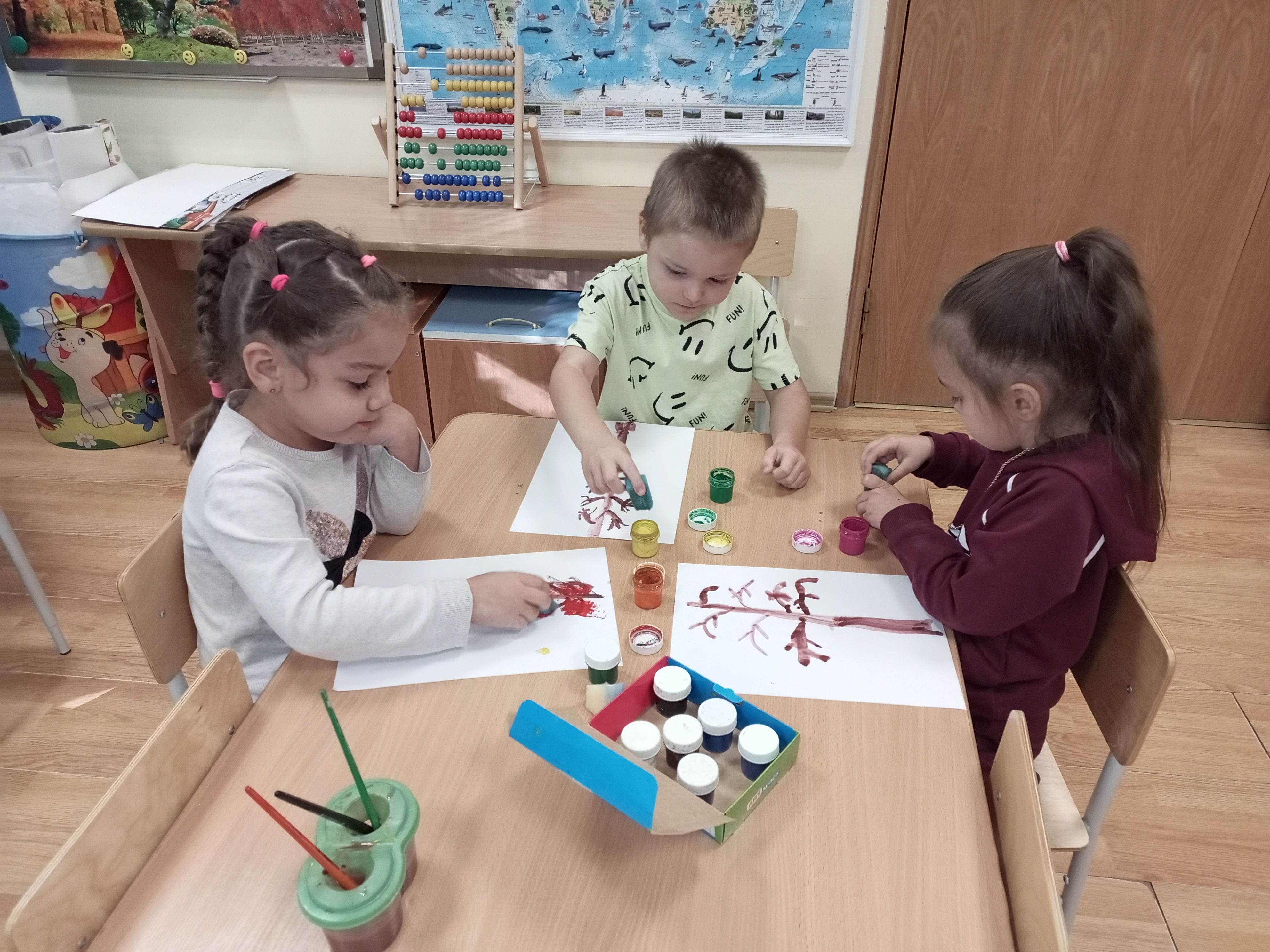 В группе раннего возраста прошло увлекательное нетрадиционное рисование пальчиками "Осеннее дерево".