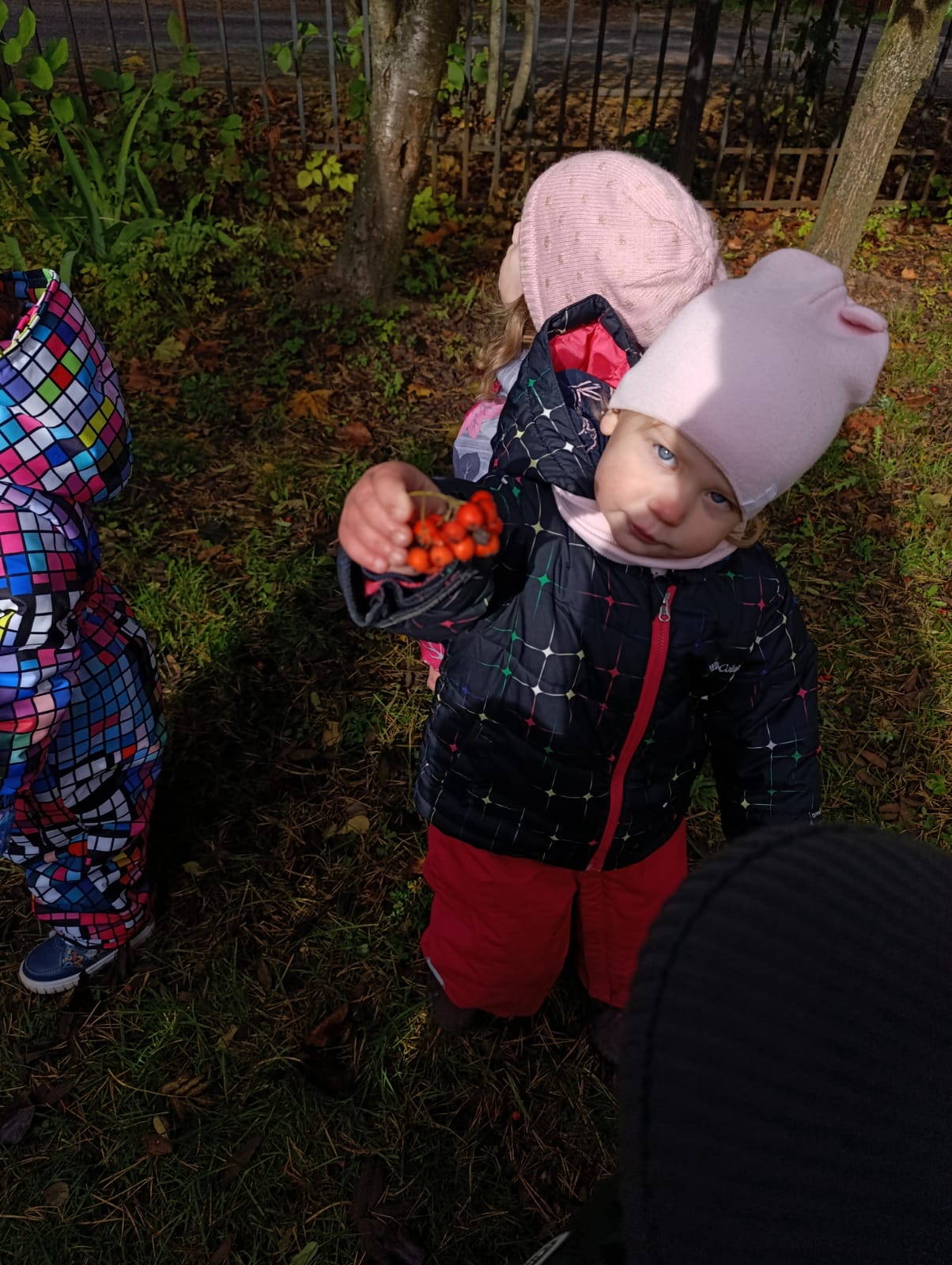 Малыши слепили букет из гроздьев рябины, а на прогулке отправились на поиски дерева. А когда нашли, рассматривали дерево, листочки и ягоды рябины.