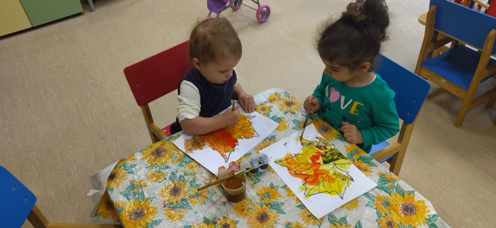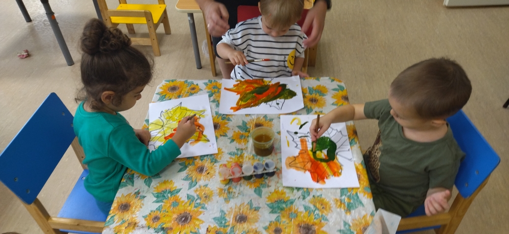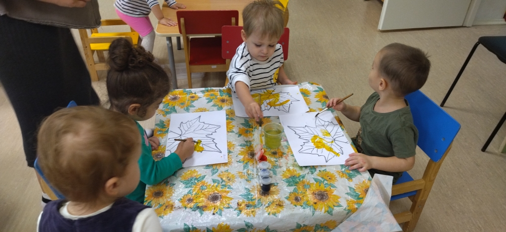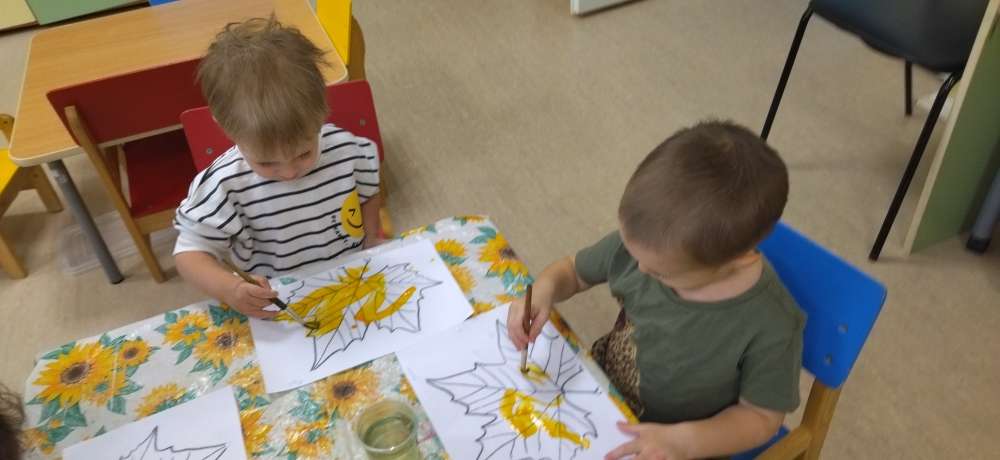 В группе раннего возраста, малыши решили перенести яркие краски осени на бумагу, и нарисовали «Осенние листья».