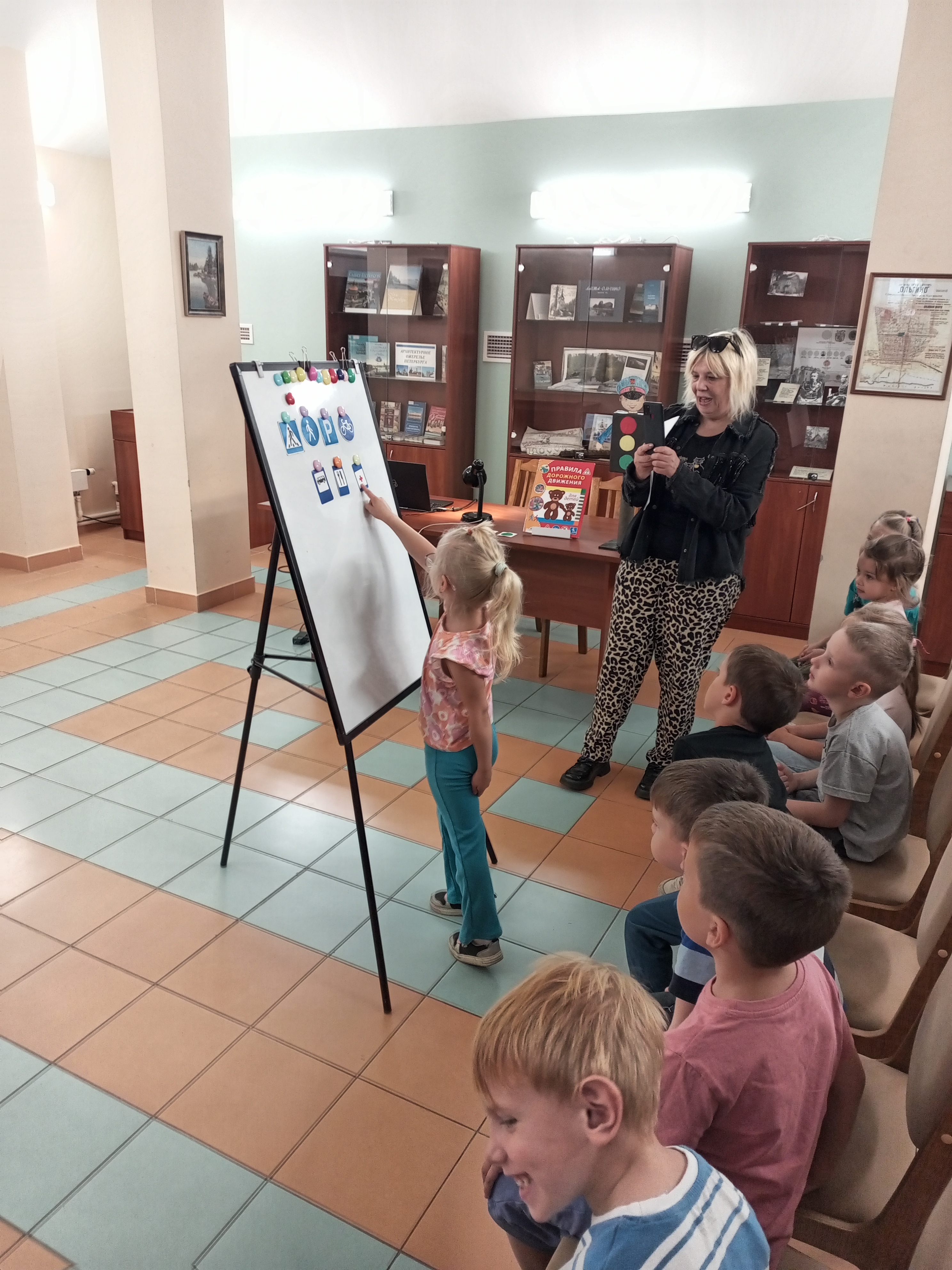 По дороге малыши повторили основные правила дорожной безопасности, а также познакомились с названиями улиц, по которым добирались до библиотеки.