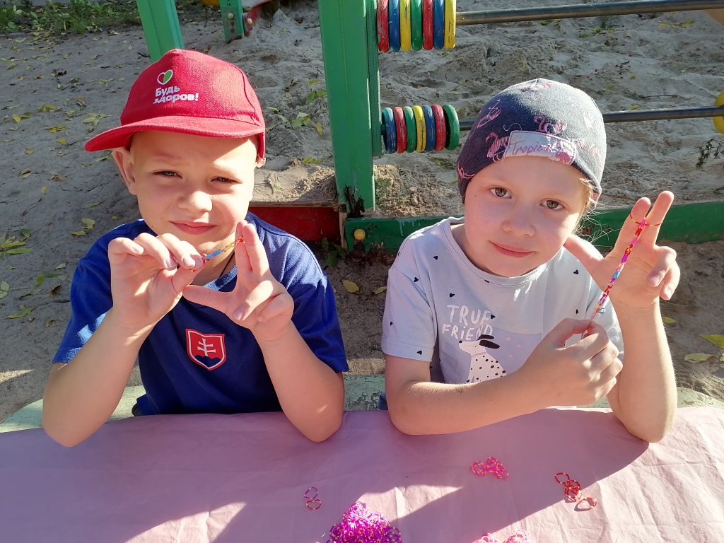 На прогулке дети подготовительной к школе группы "УМНИЧКИ", занимались плетением из резиночек. Для кого - то - это новое увлечение, а кто-то уже знаком с таким видом деятельности, но все без исключения получили удовольствие от плетения. Из маленьких цветных резиночек можно сплести привлекательные стильные украшения: браслеты, колье и многое другое. Занимаясь плетением из резиночек ребёнок учится: