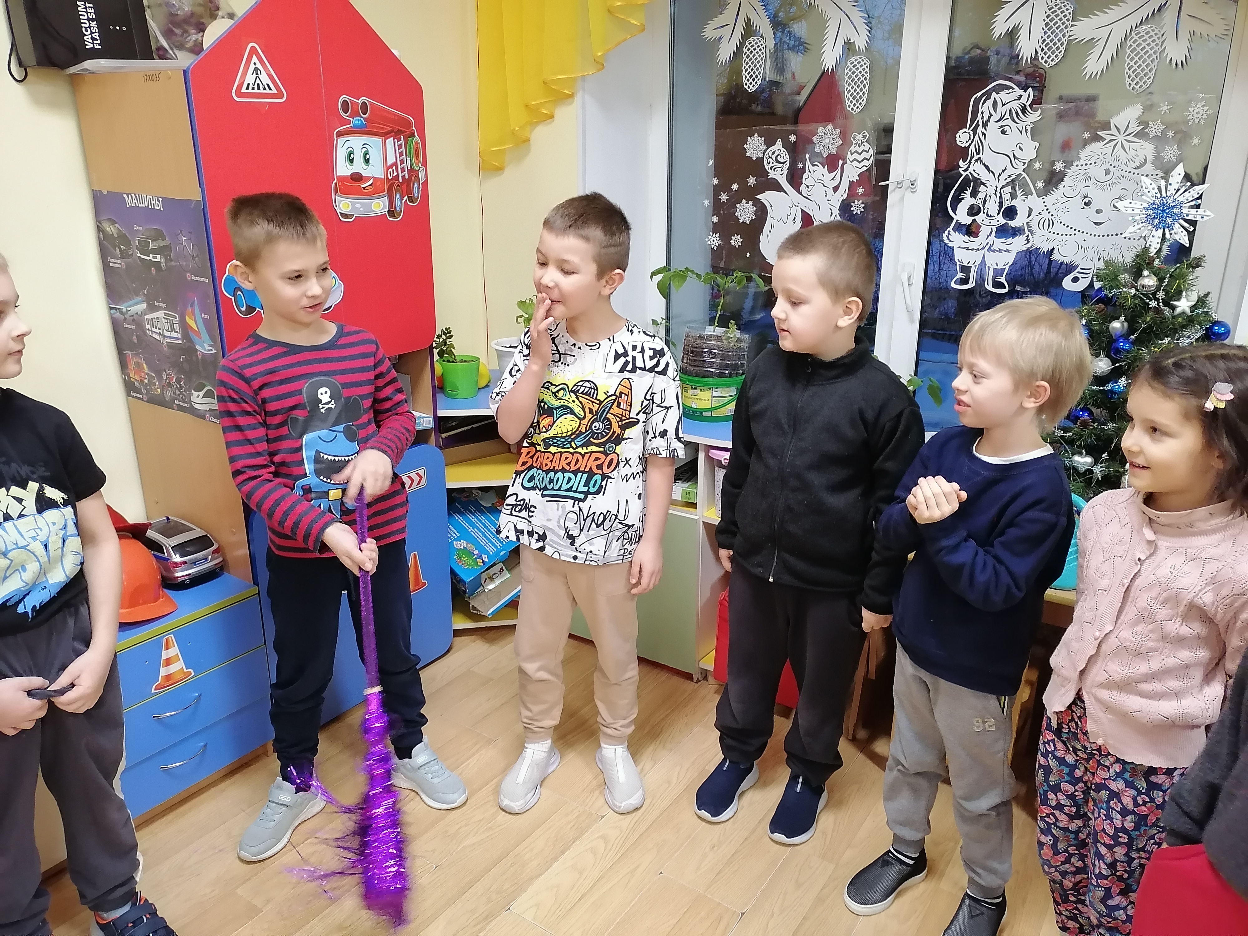 Дети познакомились с историей праздника, его значимостью, как народной традиции . Поиграли в игры: «Весёлая метёлка», «Наряди елочку», отгадывали загадки и ходили в гости колядовать.