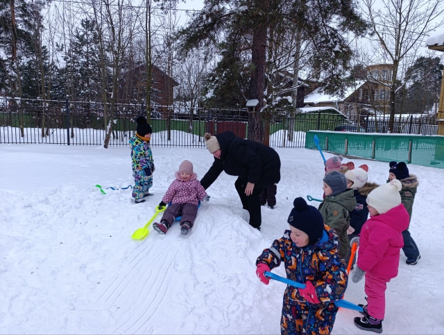 Занятие началось с обсуждения зимы. Воспитатель рассказал о том, как зимой меняется природа: деревья покрываются снегом, появляются снежинки и морозные узоры. Дети активно делились своими впечатлениями о зимних прогулках и играх на улице.
