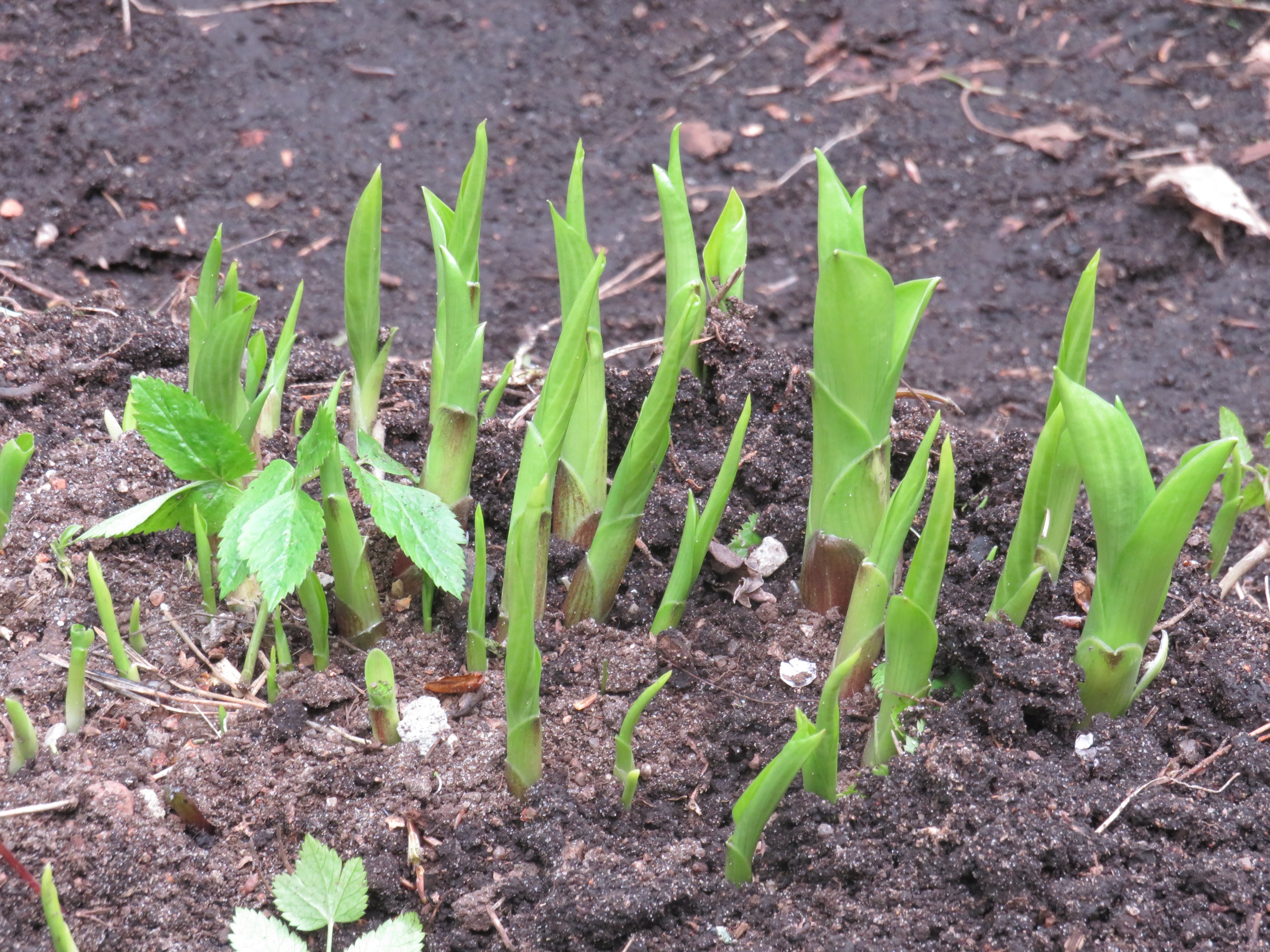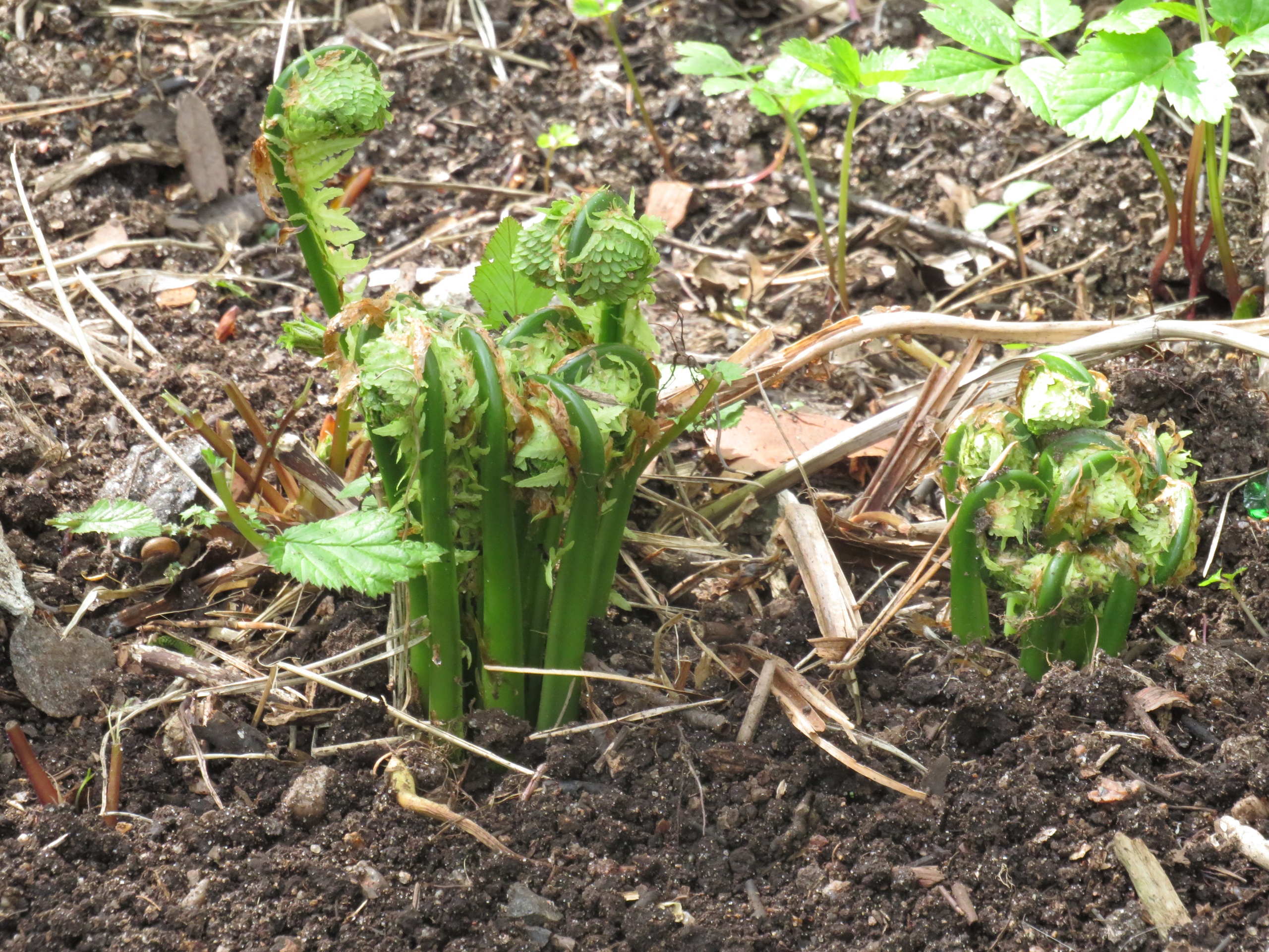 Отцвели настоящие подснежники, пролеска и чистяк. Настала пора бадана ,гусиного лука, барвинка и нарциссов. За ними торопятся показать себя во всей красе рябчики императорские и суворовский лук. Уверенно расправил свои листья рябинник рябинолистный, кружевными манжетами поднимаются над темной весенней землей акониты,набирают силу проростки лилий, готовится зацвести черемша. Зеленовато-белыми пиками пронзают почву хосты, выбираясь из тьмы к свету в стремлении поскорее развернуть шапки листьев. Каштаны пока грустят без настоящего летнего тепла,а папоротники страусники приготовились к раскручиванию улиток своих ваий. Благополучно пережили зиму стефанандры и актинидия коломикта,неспешно раскрывают почки канадские дубы. А вот лимонник китайский и азиатские цветки тролля заявили своим внешним видом на право лучших условий жизни. Из вечнозеленых рододендронов бледно-жёлтый, надо надеяться, раскроет свои цветочные почки уже этим летом